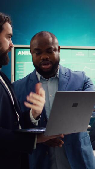 Business partners analyzing performance metrics within the organization. Conduct employee evaluations and discuss training to foster professional development and enhance team productivity. Camera B. Pro Video