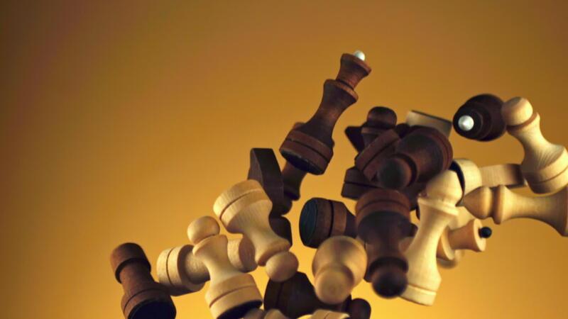 A collection of wooden chess pieces arranged in a circle on a vibrant yellow background, creating a stunning art display. Ideal for macro photography or as a unique event centerpiece Pro Video