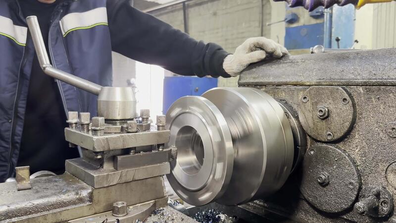 worker Trainee mastering the art of metalworking on a lathe in a workshop Free Video