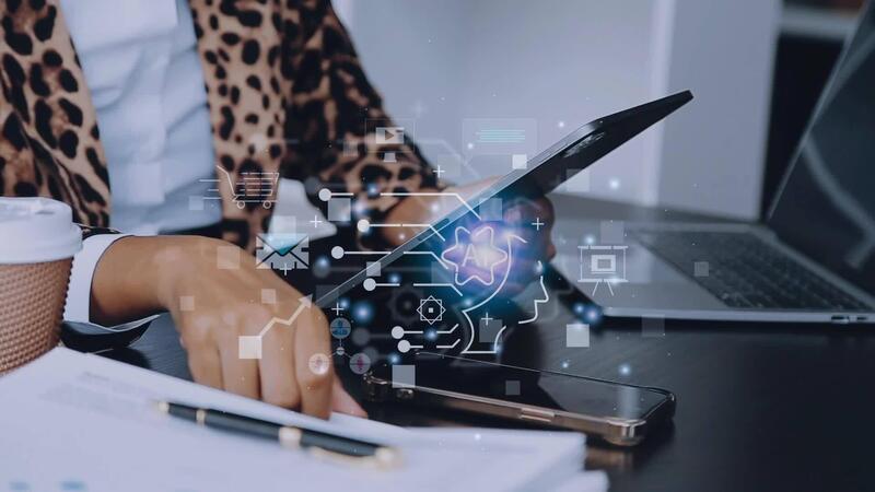 Technology and people concept man use AI to help work, AI Learning and Artificial Intelligence Concept. Business, modern technology, internet and networking concept. AI technology in everyday life. Free Video