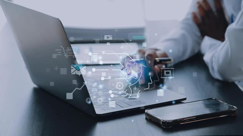 Technology and people concept man use AI to help work, AI Learning and Artificial Intelligence Concept. Business, modern technology, internet and networking concept. AI technology in everyday life. Free Video
