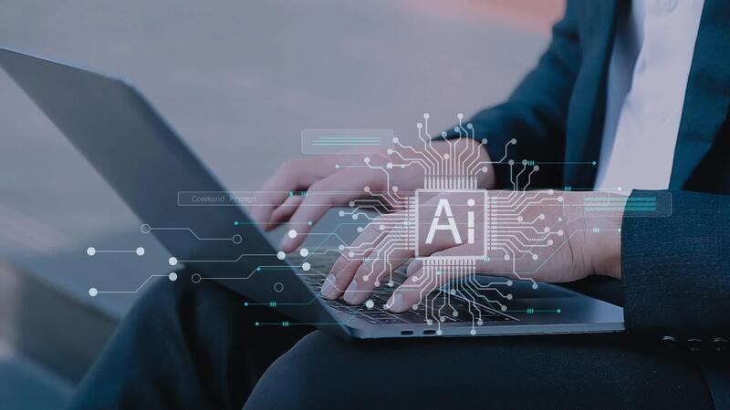 Ai technology, Artificial Intelligence. man using technology smart robot AI, artificial intelligence by enter command prompt for generates something, Futuristic technology transformation. Chat with AI Free Video