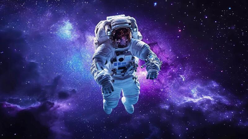 AI Generated Slow motion of an astronaut levitating, background of cosmos of the Universe in weightlessness of constellation cluster. Free Video