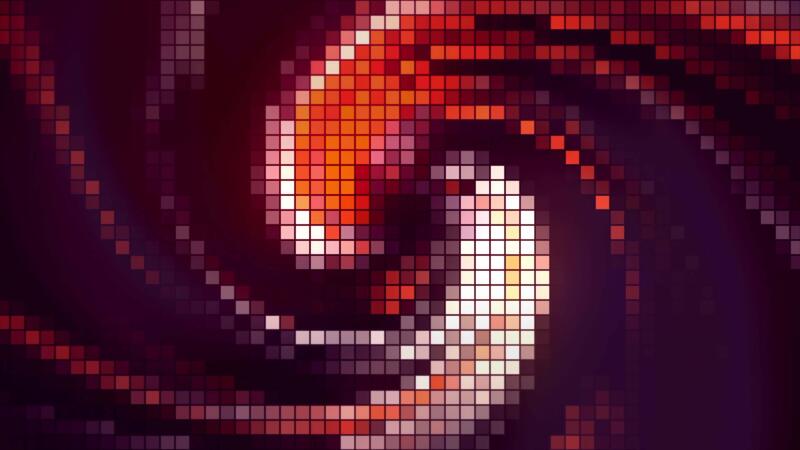 Pixel image of rotating galaxy. Motion. Rotating colorful spiral of square mosaic. Retro image of rotating galaxy of pixels Pro Video