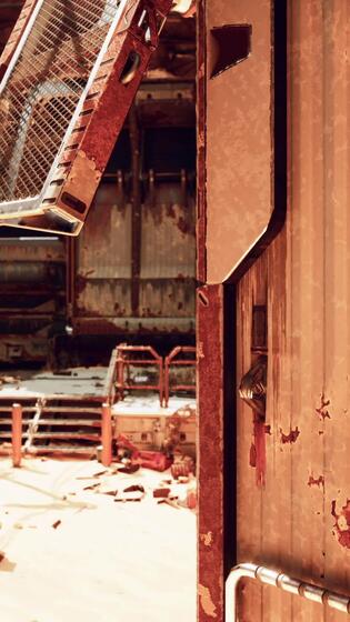 A dilapidated building with a rusty metal object hanging from its side Pro Video