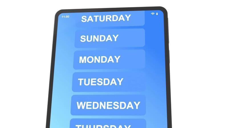 Electronic tablet with calendar app and text Soft Skills. Scheduling concept, deadline control. 3D animation Free Video