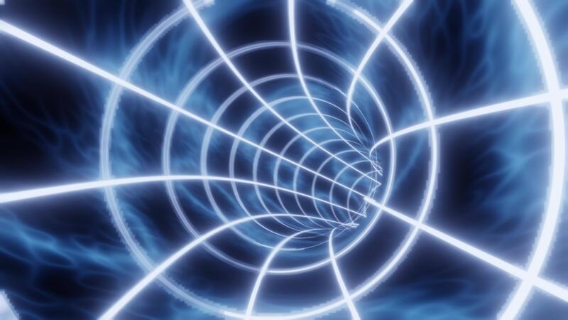 Blue color animation loop with glowing lights. Interdimensional tunnel background 3d Pro Video