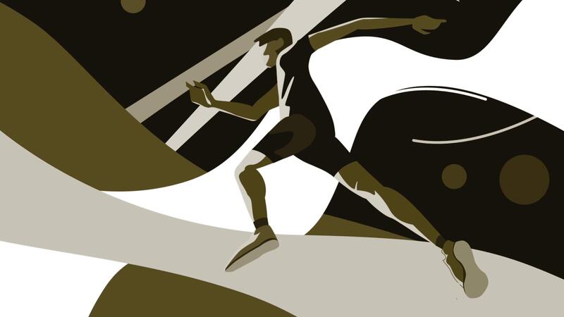 A football player running in slow motion on abstract background with retro effect. Motion. A silhouette of a sportsman during the game. Pro Video