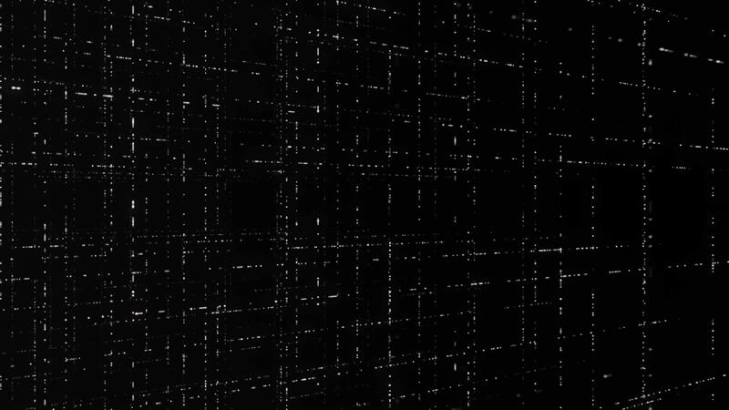 Abstract orderly movement of energy white impulses isolated on black background, seamless loop. Animation. Colorful signals flowing in shapes of squares, monochrome. Pro Video