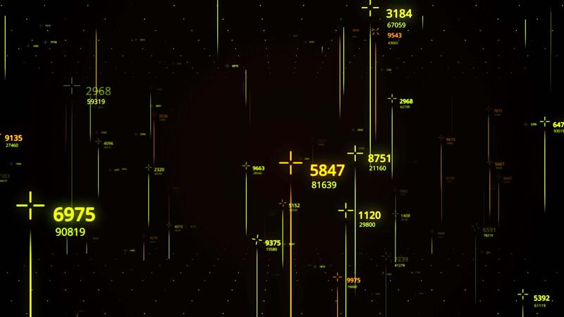 Abstract futuristic technology for space measuring. Animation. Colored vertical narrow lines with numeric data, seamless loop. Pro Video