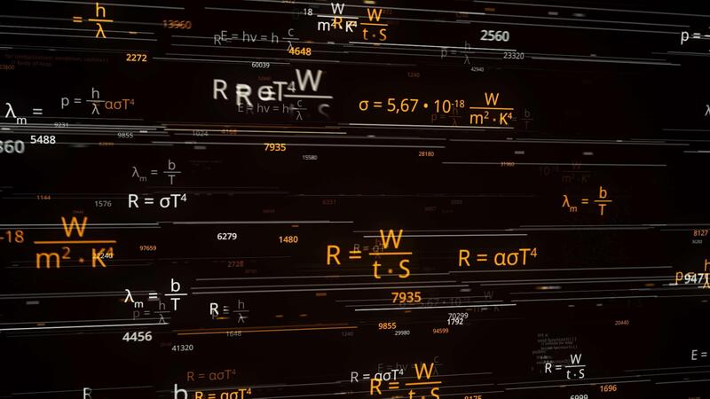 Visualization of artificial intelligence AI typing mathematics and physics formulas in abstract digital space. Animation. Scientific symbols and formulas gathering into one shining shape on black Pro Video