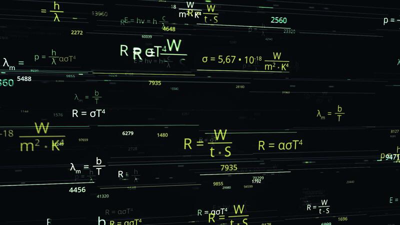 Abstract floating mathematical formulas on the dark background. Animation. Concept of school studies, formulas becoming a source of light as a symbol of knowledge power. Pro Video