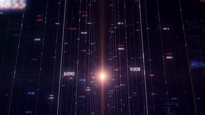 Movement in virtual space with light. Animation. Cyberspace between reality and matrix with flying numbers and bright light. Dive into virtual space between worlds Pro Video