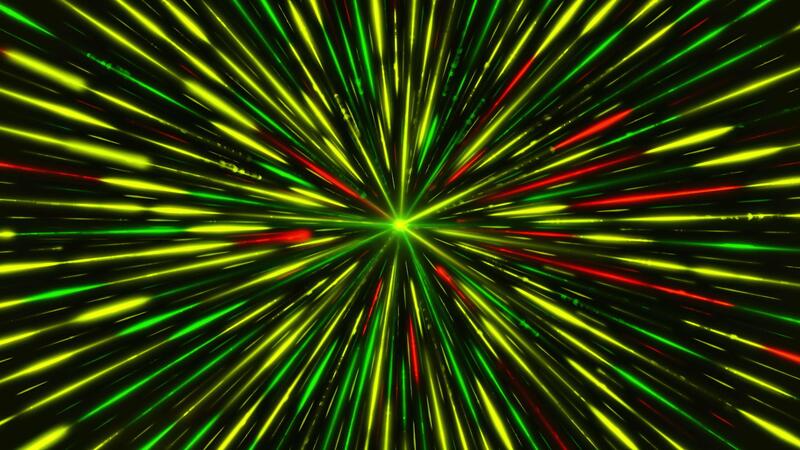 Abstract creative cosmic background with a green star absorbing colorful rays, seamless loop. Animation. Glowing stripes flowing into one point on black background. Pro Video
