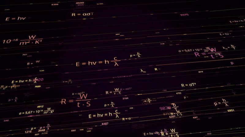 Many formulas in physics. Animation. Formulas for physics in electronic form on dark background. Neon physics formulas swirl in whirlwind in cyberspace Pro Video