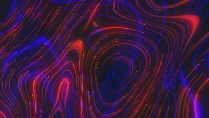 Bright curved lines pulse on dark background. Motion. Energy or electrical filaments move rapidly and pulsate in space. Beautiful patterns of neon colored lines swirl in single energy flow Pro Video