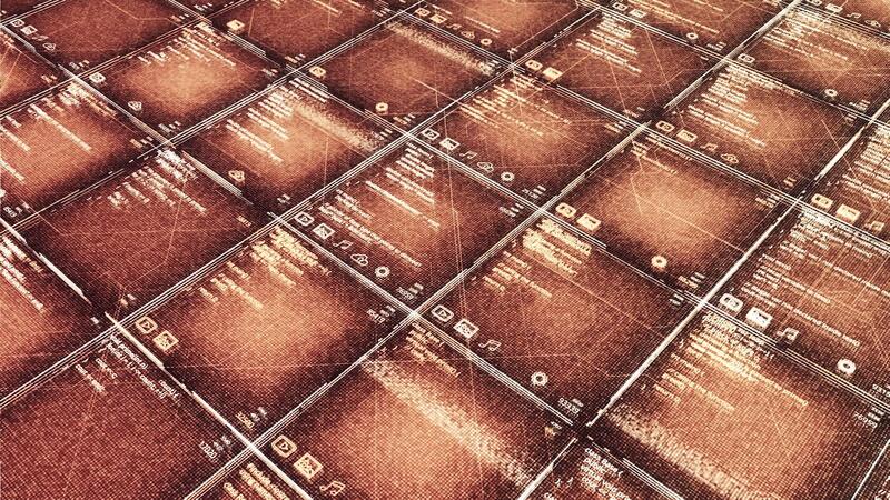 Abstract background with colorful surface divided into cells with self written code. Animation. Technologic IT backdrop, seamless loop. Pro Video