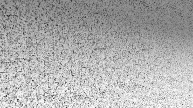 Circuit board monochrome background with running impulses, computer, microchip nano technology concept. Animation. Black and white bended texture with moving straight pixelated lines. Pro Video
