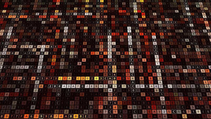 Background of a grid of square small elements with numbers dynamically replacing each other. Animation. Waving information background, seamless loop. Pro Video