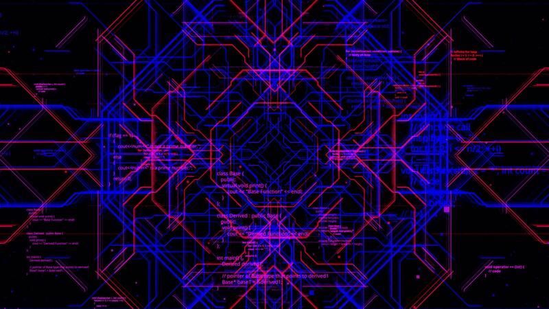 Flight through flow of digital informational tunnel, global connection concept. Animation. Blocks of computer code and narrow neon lines, seamless loop. Pro Video