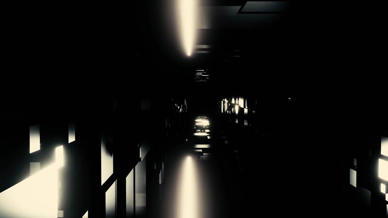 Flying through futuristic shadowy alien cube tunnel, seamless loop. Design. Endless corridor of different cubes and light stripes. Pro Video