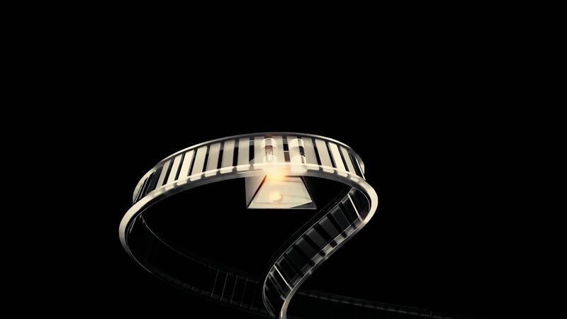 Abstract rollercoaster curved rails and a moving cart, seamless loop. Design. Wagon with a crystal ball rolling on rails. Pro Video
