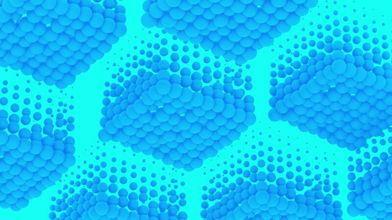 Abstract geometric clouds in a form of a cube of small bubbles, seamless loop. Design. Visualization of blue sky and clouds in digital style. Pro Video