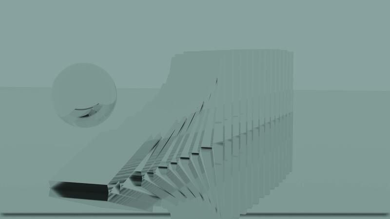 Abstract sphere hitting a row of standing tiles that falling down. Design. Visualization of domino effect, a ball smashes same size tiles. Pro Video