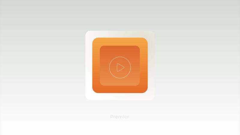 Abstract visualization of a modern smartphone application. Motion. Square shaped colorful icons of a media player. Pro Video
