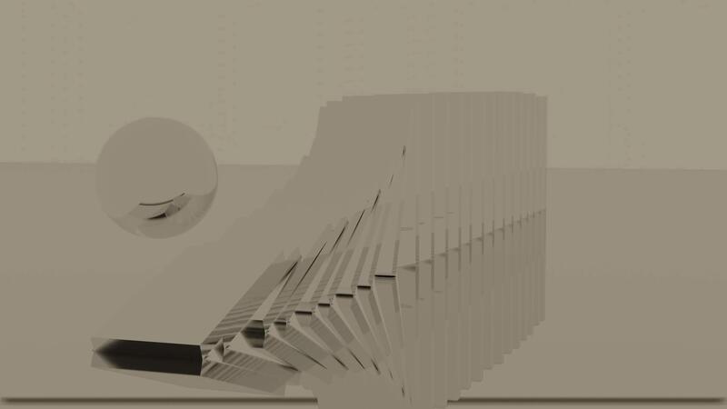 Abstract sphere hitting a row of standing tiles that falling down. Design. Visualization of domino effect, a ball smashes same size tiles. Pro Video