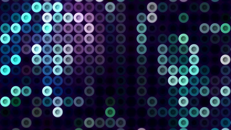 Colorful dots move in mosaic in computer space. Motion. Beautiful mosaic background of glowing dots moving in retro style. Computer game animation with neon retro dots Pro Video
