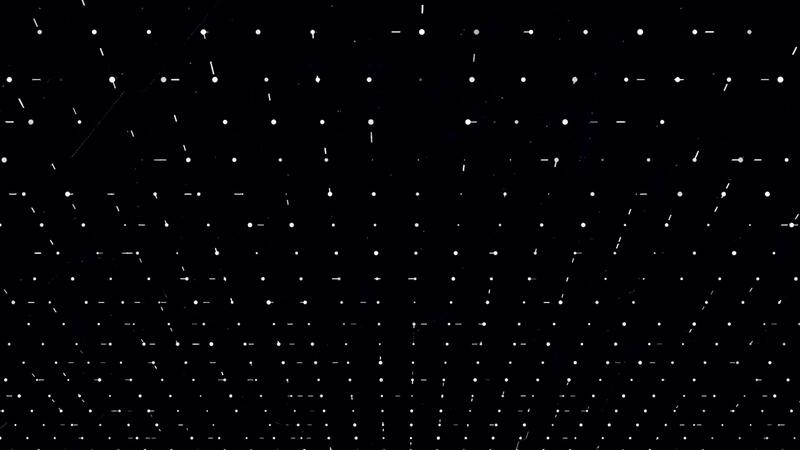 Abstract grid with narrow short lines moving randomly from dot to dot. Animation. Flowing digital surface divided into squares, seamless loop. Pro Video