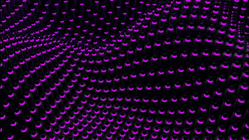 Abstract wavy texture of flowing purple and black particles, seamless loop. Design. Big ripples of cubic shaped canvas. Pro Video