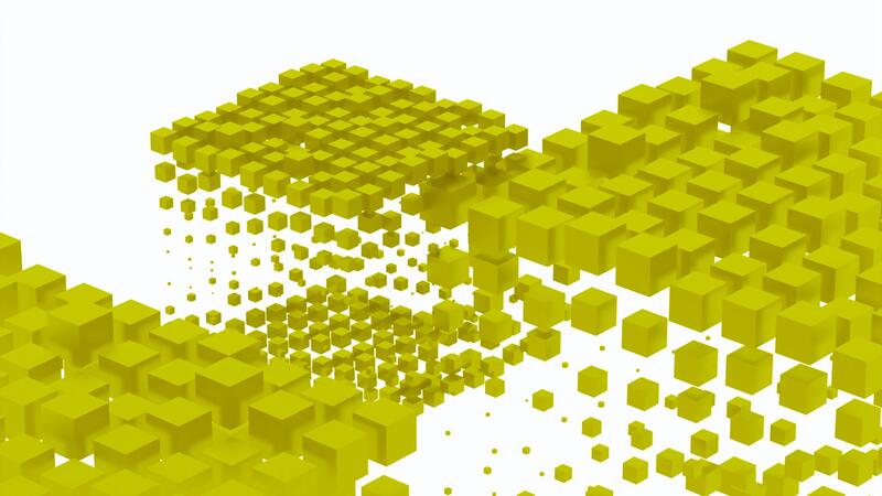 Cubes move up and down. Design. Lot of cubes of different sizes are moving in air. Looped movement of cubes in air Pro Video