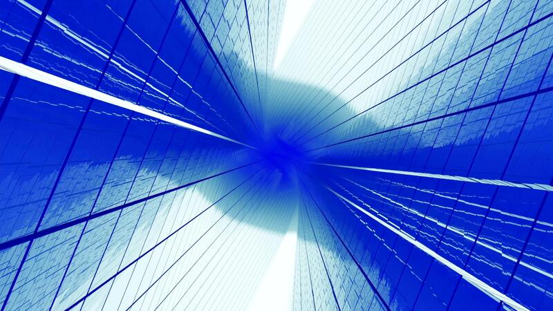 Animation of falling between buildings. Design. 3D glass walls with reflection during fall. Dive into virtual fall with fast speed between buildings. Dizzying virtual fall between walls into fog Pro Video