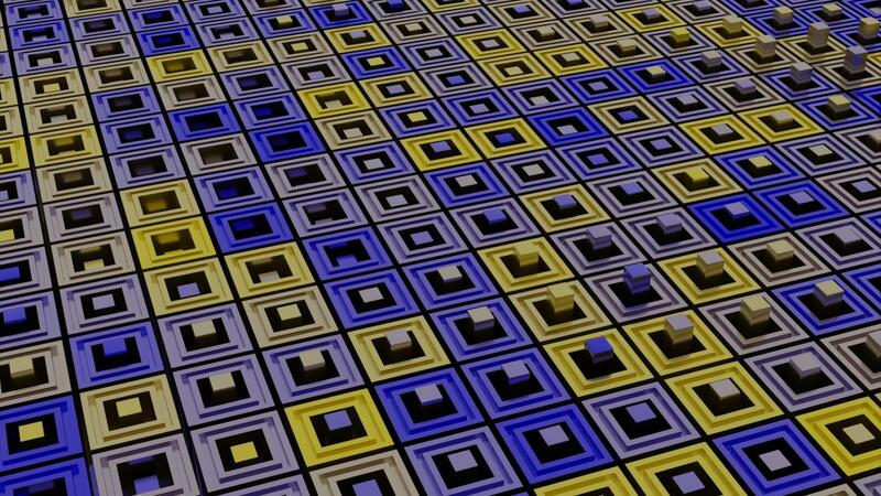 Rotating surface of multicolored squares. Design. Background with surface of many colorful squares. Small cubes appear from holes in squares on surface Pro Video