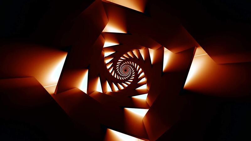 Looping symmetrical abstract motion of triangles on a black background. Design. Colorful spiral creating a tunnel effect, seamless loop. Pro Video