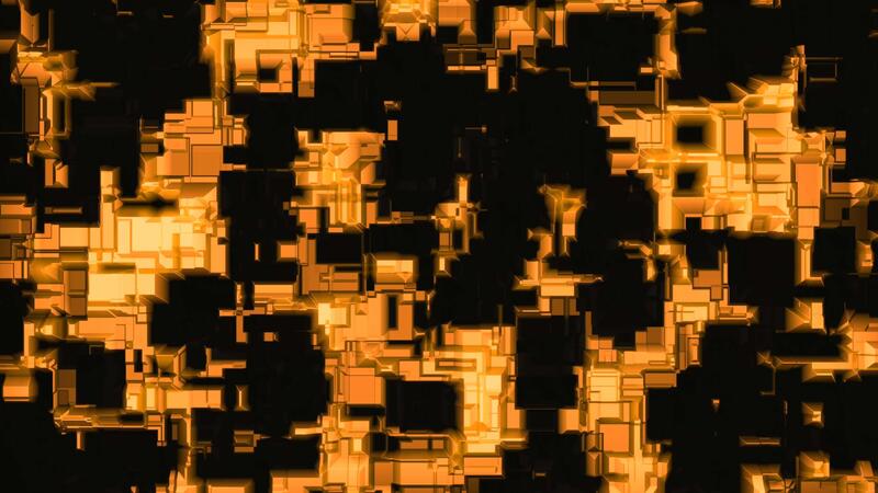 Black background.Design. A bright background with green and orange illuminated particles that flash like puzzles in turn in abstraction. Pro Video