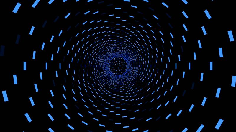 Spiral shaped moving rectangles creating effect of endless spinning funnel, seamless loop. Design. Blue starry tunnel. Pro Video