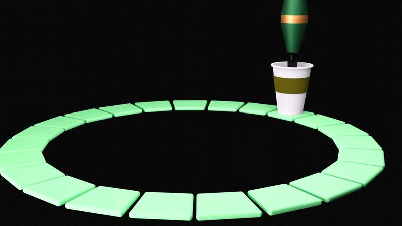 Abstraction with a glass.Design.A glass into which coffee is poured and it is covered with a lid on a black background with sparkling elements. Pro Video
