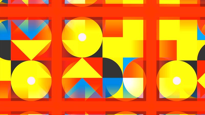 Background in abstraction. Motion. Abstract of red color, which depicts multicolored geometric shapes and which change to other shapes. Pro Video