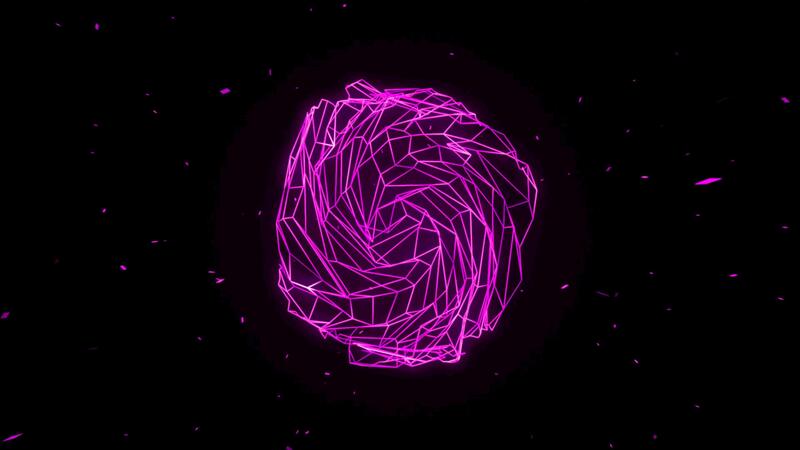 Purple abstraction composing a circle from a grid. Animation. A black background with a purple grid in the middle that makes up a geometric shape and rotates around itself. Pro Video