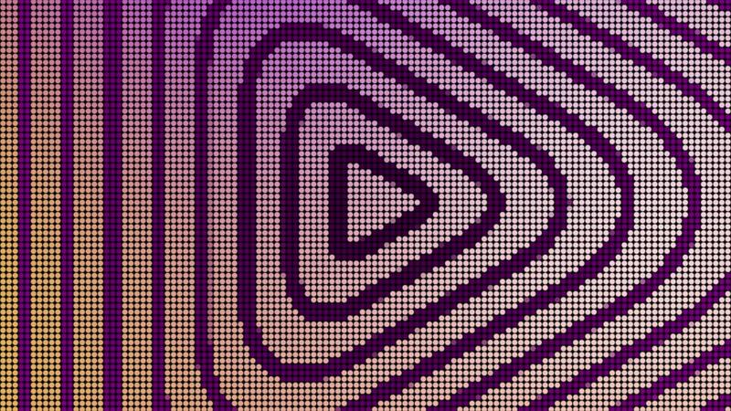 Animation of looped movement of electronic arrow. Motion. Triangular arrow of player decreases towards center. Set of repeating arrows decreases in electronic space Pro Video