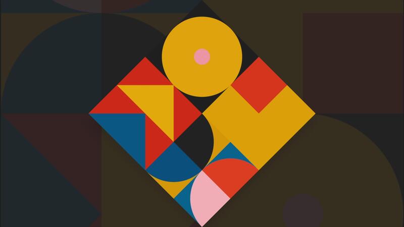 Bright geometric shapes background, seamless loop. Motion. Flat figures. triangles, squares, circles etc moving and transforming rhythmically. Pro Video