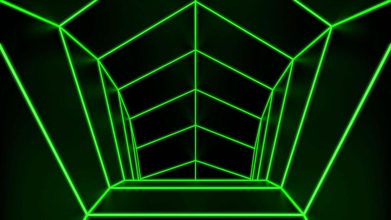 Moving down tunnel with neon lines. Design. Tunnel with bright neon lines highlighting structure. Beautiful 3d tunnel in matrix style Pro Video