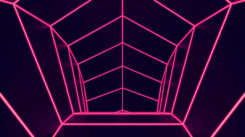 Abstract colorful tunnel silhouette on a black background, seamless loop. Design. flying inside hexagonal shaped tunnel. Pro Video