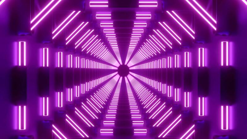 Slow flight through abstract 3D alien technology tunnel, seamless loop. Design. Glowing optical illusion, symmetrical corridor. Pro Video