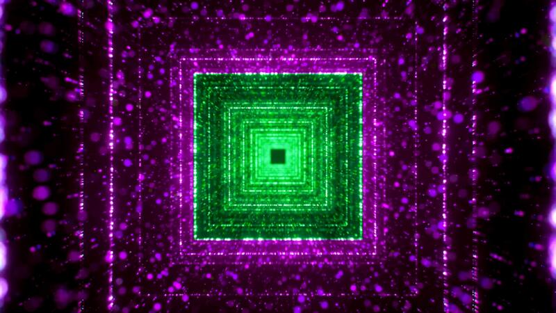 Abstract star tunnel with square silhouettes in the middle of a screen. Motion. Flying through space dust field of shiny particles, optical illusion, seamless loop. Pro Video