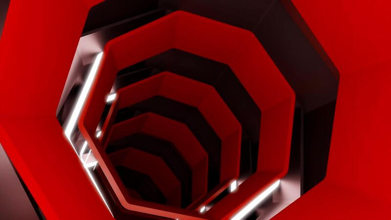 The red tunnel. Design.Geometric ovals sparkle with white lightning in abstraction and move forward. Pro Video