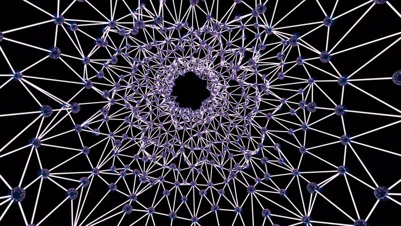 Abstract moving plexus texture with a tunnel effect on a black background. Design. Connected lines and dots like a spider web. Pro Video
